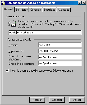 Existe la posibilidad de incluir automáticamente otra dirección e-mail para que sea utilizada como dirección alternativa de respuesta cuando los demás utilicen la opción "Responder al remitente". Es especialmente útil cuando enviamos los mensajes desde un sitio distinto del utilizado para recibirlos.