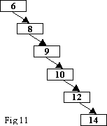 Como se ha indicado, la forma de un árbol binario ordenado depende exclusivamente del orden de introducción de los datos. Cuando el árbol adopta la forma aproximada de la figura 8 se dice que está equilibrado; por el contrario, el de la figura 9 está desequilibrado. A su vez, el caso representado en la figura 11 ha degenerado en una lista simplemente enlazada. Habrá observado que el árbol más desequilibrado (degenerado) se obtiene precisamente cuando se suministran los datos ordenados, y que los mejores resultados, en cuanto al equilibrio, se obtienen con un orden aleatorio.