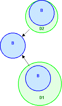 (inmediatamente accesible), contiene los miembros privativos de la clase derivada, por ejemplo d1.x. El segundo B,