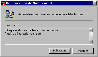 En la figura 5 se muestra el mensaje resultante en un caso en que se ha seleccionado una velocidad de conexión que no puede ser soportada por el módem.