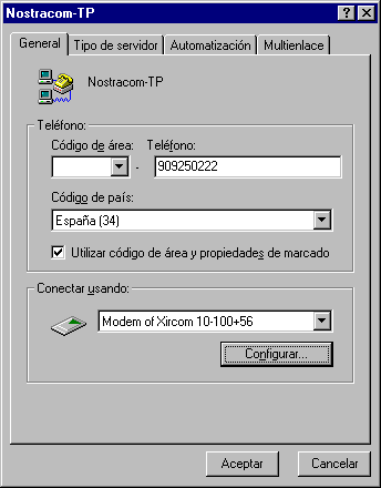 selecciona el módem usado en la conexión (si se ha instalado más de uno). Pulsando el botón "Configurar"