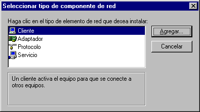 Aparece un nuevo cuadro (Figura 13). En la ventana izquierda "Fabricante", seleccione "Microsoft"; en la ventana derecha "Cliente de red" seleccione "Cliente para redes Microsoft". Pulse el botón Aceptar. Con esto volverá a la pantalla anterior (Figura 12). Si en el cuadro de la figura 11 no existía el serivicio "Compartir impresoras y archivos para redes Microsoft", ahora puede añadirlo seleccionando el icono "Servicio" y el botón Agregar. | |