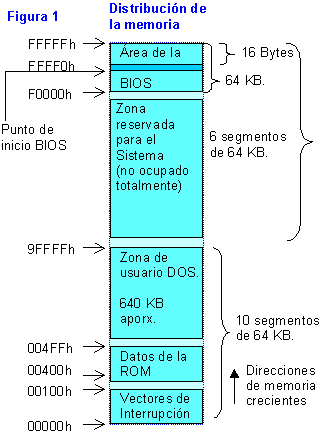 La figura 1 muestra un esquema de la distribución de memoria (la escala vertical no guarda proporción)