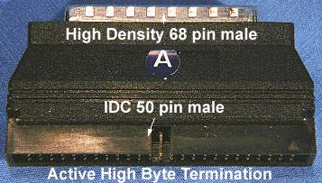El cable SCSI tipo A (estrecho) permite conectar hasta 8 dispositivos físicos, recomendándose que su longitud no exceda de 3 metros [1]. Cada dispositivo de canal debe competir por el uso del bus, y se identifica por un número ID de identificación (0/7) que se selecciona en la propia unidad y que determina además su prioridad.