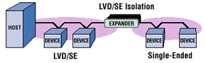 - Forzar SE (Force SE): Esta opción permite que las nuevas unidades Ultra2, Wide Ultra2, Ultra160, Ultra160+ o cualquier otro dispositivo que utilice tecnología de bus LVD ("Low voltage differential") sea forzado a utilizar la tecnología Terminación Simple SE ("Single Ended") [2].