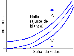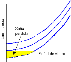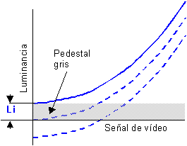 En la figura 6 se muestra la curva de respuesta señal/luminancia para un ajuste demasiado alto. El valor añadido Li hace que exista respuesta luminosa para señales nulas, con lo que la imagen se forma a partir de un "pedestal de gris".