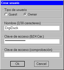 debe seleccionarse el tipo de usuario (qué derechos de acceso tendrá),