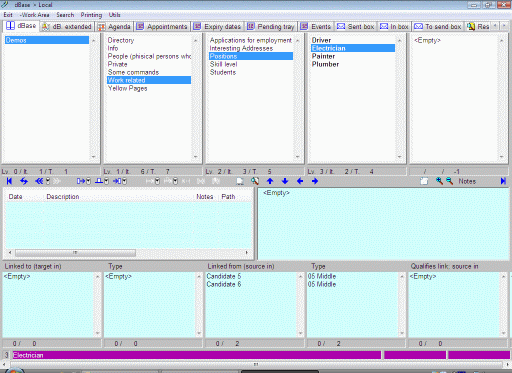 Puesto que son independientes entre sí, en un momento dado, cada zona de la aplicación (main, dBase, Planificador y Buzón) pueden estar conectadas al área de trabajo, local o remota. En cualquier caso, algunas opciones de la zona inicial (main) se ejecutan siempre sobre la dBase local cualquiera que sea él área de trabajo conectada.
