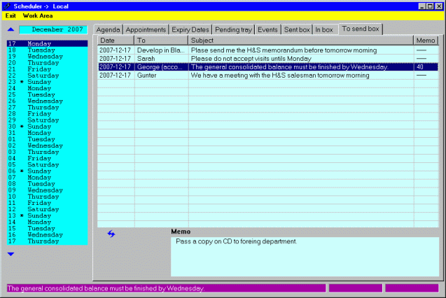 Note that the Memo column indicates the number of characters in the cell (----- if it is empty). The actual content of this field to the line that has hotbed at the time, can be found at the bottom window (which indicates <Empty Memo> if it do not have content). At the same time, the left window of the bottom status line (purple) contains the entire field Subject, which is useful if the text is too long for current width of the column.
