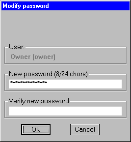 By selecting this option there appears a window (figure 1) that reminds the user whose password are changing. Do not forget that these keys are case sensitive (check the state of the capital selector on your keyboard), and that its length must fall between 8 and 24 alphanumeric characters.