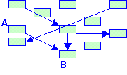 The other concept is link or relationship. The links can be displayed as lines joining any pair of atoms (the referred cards). These lines represent relationships; therefore indicate that there is some relationship between the pair of atoms related by them. Their number is unlimited in the sense that you can create the necessary, and it is also unlimited the number of relationships that a card may have with others. Links relate two atoms in a vector form (has direction and sense). So, the relationship A > B is different from the relationship A < B. In the first case we say that the concept A is linked to B (A is the source of the liaison and B is the target) and that B is linked from A. Is the idea reflected in Figure 1 who shown several atoms and links.