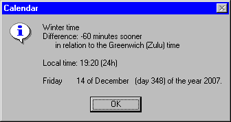This option presents a first window (figure 1) with information on the date and local time (System) and other complementary information: summer or winter time; difference between local time and the standard Greenwich (UTC), and days since the beginning of the year.