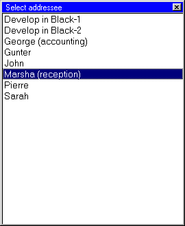 The summary of the process is as follows: once selected the addressee, and filled the fields subject and body in the corresponding form (see below), the message is deposited in the destination's mailbox. If for whatever reason can not be sent to their destination. For example, because the addressee's mailbox is on a machine that is temporarily off-line, the message is deposited in the output tray (pending to send) until it is forwarded again.